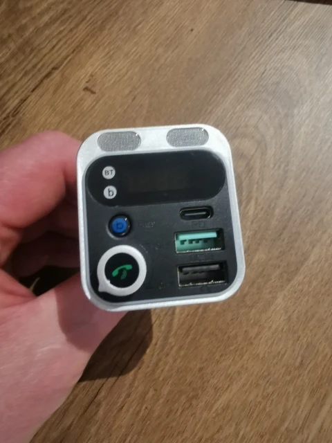 It's small, I thought it was bigger, but it's fine like this. I've tried it, it pairs easily with Bluetooth and FM. I had problems with the sound, not very good, I looked for another dial with less noise and then playing with the radio volumes, the phone and the device sounded fine. I answered a call and it works well.